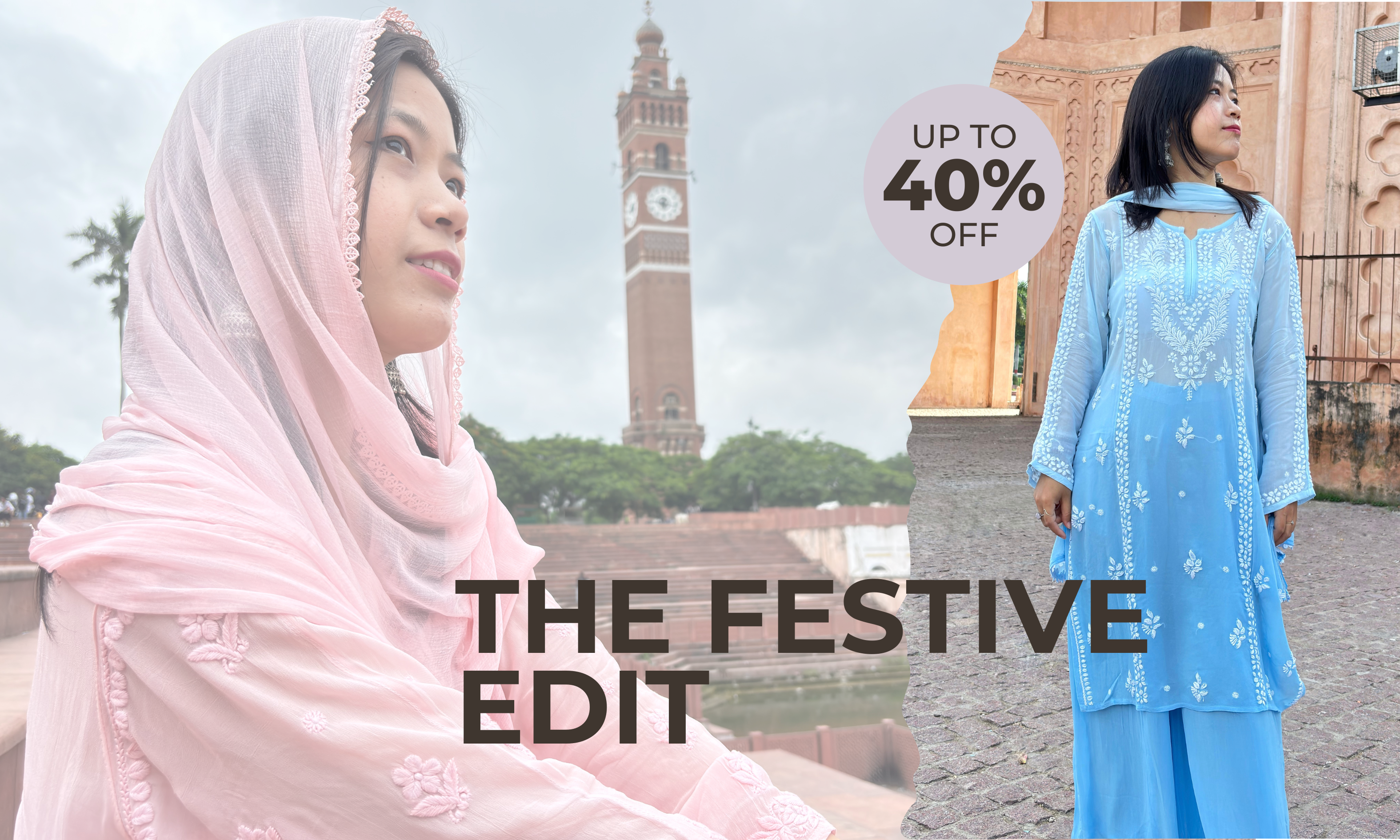 Chikankari Sunset Peach Kurta Modal