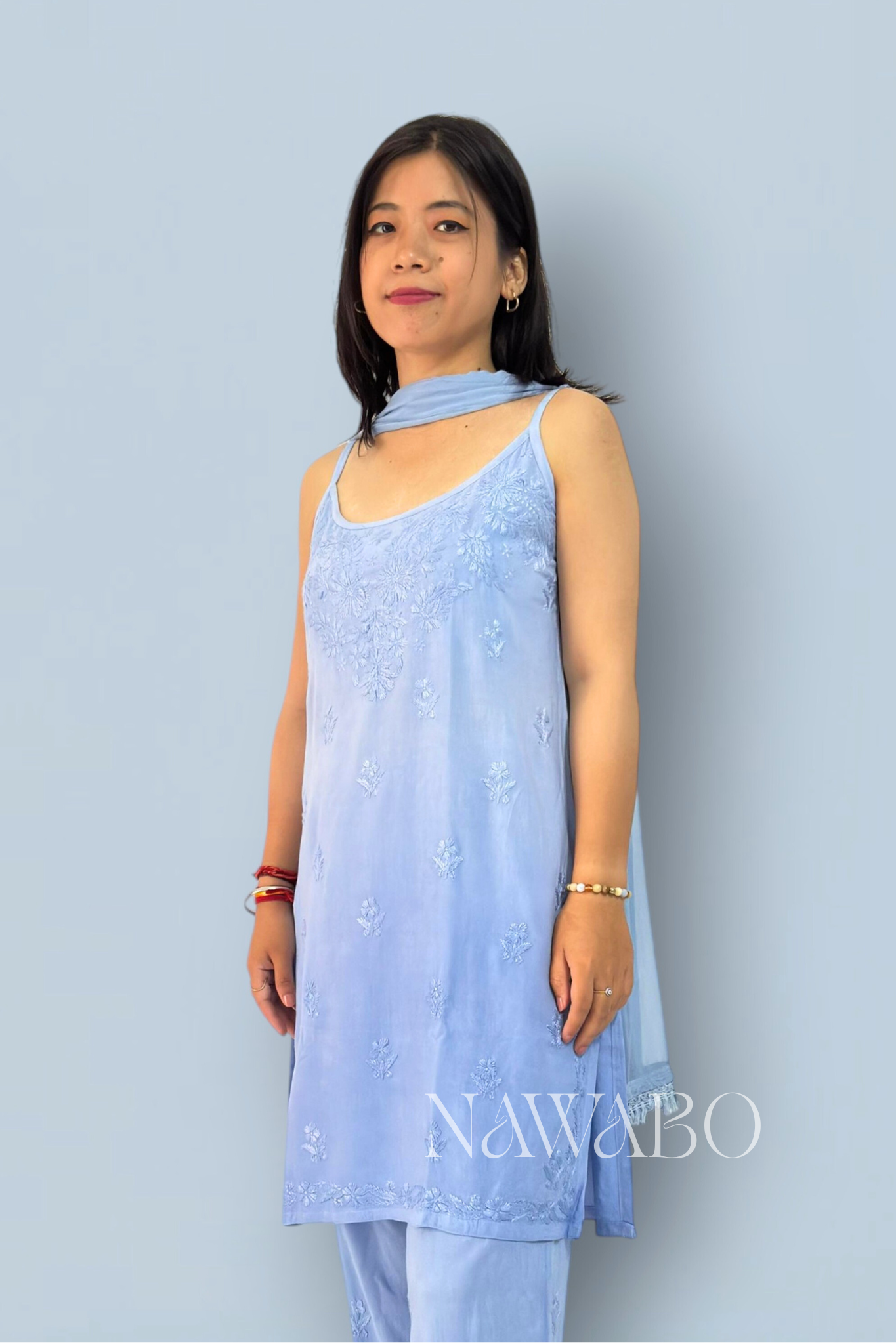 A seamless blend of heritage and modern elegance, this kurta is crafted in soft Rayon fabric, known for its graceful drape and delicate texture. Adorned with intricate hand-embroidered Chikankari, each ensemble is a tribute to the skilled artisans of Lucknow and the timeless art they carry forward.